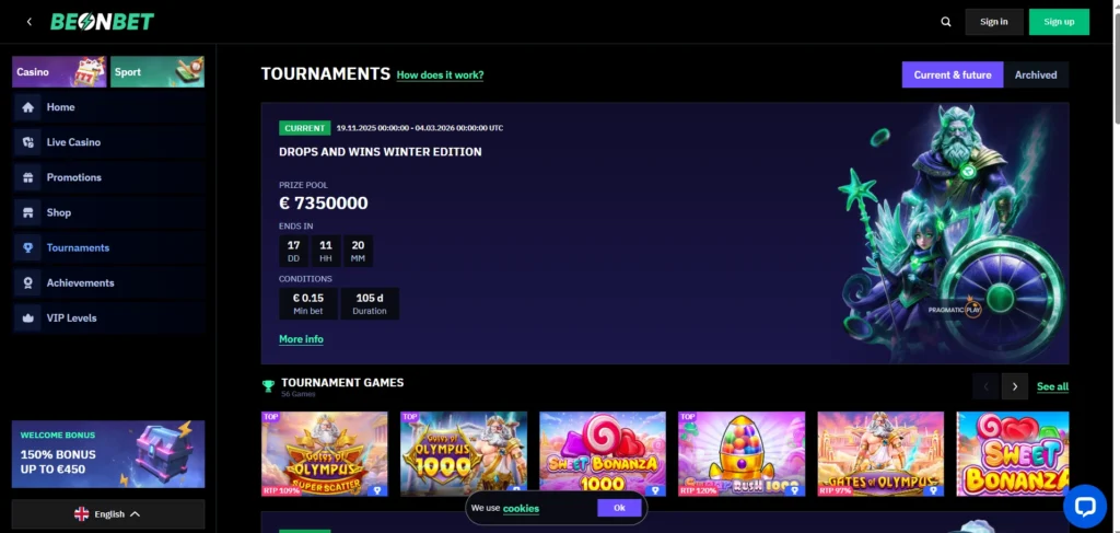 BeonBet offers an extensive casino games library with thousands of titles, primarily focusing on slots (estimates range from 3,200+ to over 7,500 slots across reviews), supplied by 60–80+ providers including Pragmatic Play, Evolution Gaming, NetEnt, BGaming, Playson, Hacksaw Gaming, Nolimit City, Play’n GO, Relax Gaming, Yggdrasil, Quickspin, and many others.
