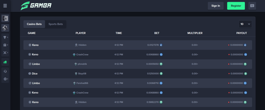 Game Shows & Originals: Gamba also includes Game Show–style games and Originals, which are simpler, provably fair games such as Dice, Plinko, Keno, and Coin-Flip, offering a unique gaming experience beyond conventional casino fare.